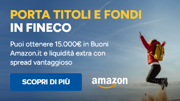 Messaggio pubblicitario con finalità promozionale. Per tutte le condizioni relative ai prodotti e servizi pubblicizzati occorre fare riferimento a fogli informativi e moduli informazioni pubblicitari e alla documentazione informativa prescritta dalla normativa vigente, disponibili alla sezione Trasparenza del sito e presso i consulenti finanziari abilitati all’offerta fuori sede Fineco. Tutti i prodotti offerti sono riservati ai correntisti Fineco.