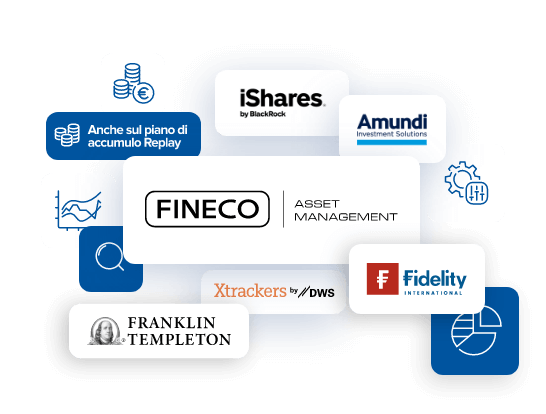 Crea la tua strategia con gli ETF Franklin Templeton, Fidelity, Fineco Asset Management, Xtrackers, iShares e Amundi a zero commissioni di acquisto. E se vuoi investire poco alla volta, abbiamo il Piano di Accumulo che fa per te.