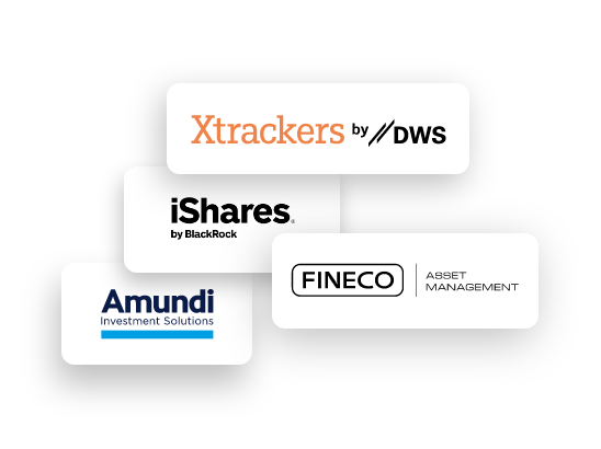 Investi e diversifica con più di 800 ETF di Fineco Asset Management1, iShares, Xtrackers e Amundi senza commissioni di negoziazione per ordini di acquisto. Regolamenti